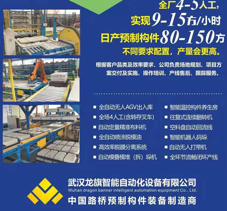 3、龍旗智能擁有預(yù)制構(gòu)件生產(chǎn)線設(shè)備多項(xiàng)國(guó)家專(zhuān)利技術(shù)。預(yù)制塊機(jī)械設(shè)備核心部件精工制造,采用抗疲勞設(shè)計(jì),延長(zhǎng)了主機(jī)的使用壽命。